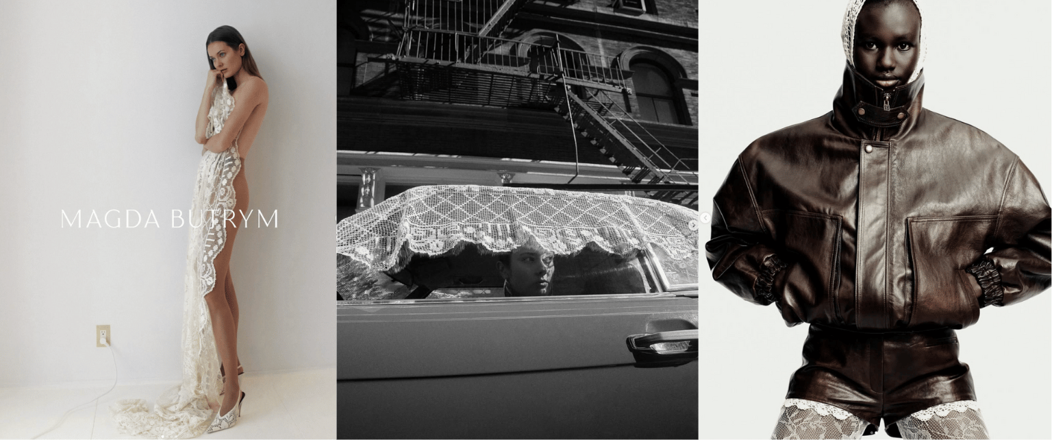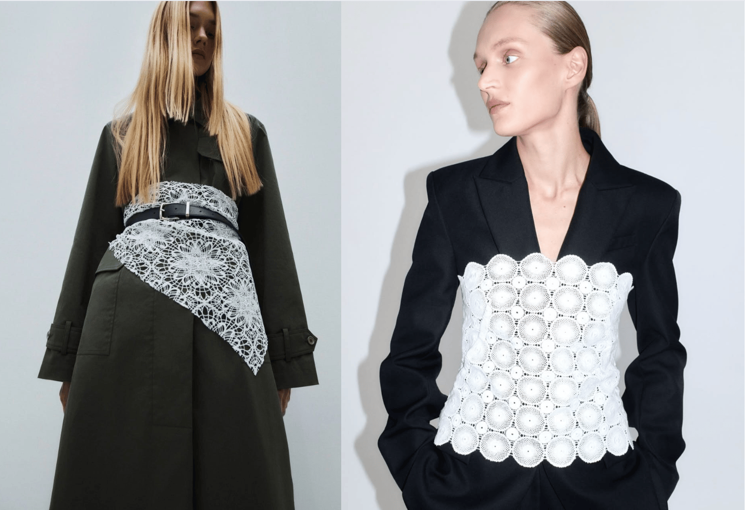 Separei três marcas: Magda Butrym, The Row, Zara, que interpretam a renda de formas muito diferentes e todas extremamente relevantes para entender os caminhos que essa estética vem tomando: