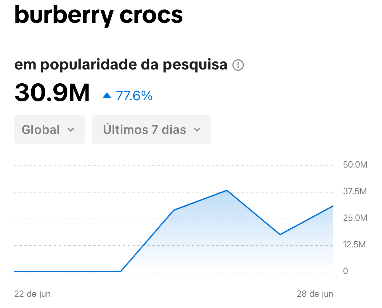E no Tik Tok “burberry crocs” teve 30,9 milhões de buscas nos últimos 7 dias: