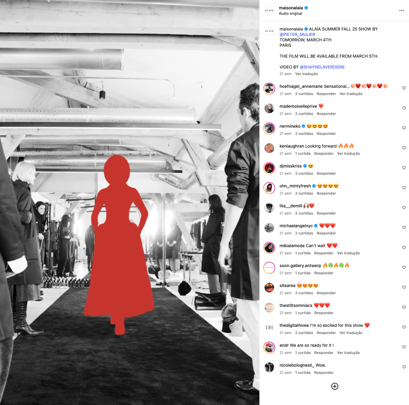 A Alaïa, por exemplo, aplica IA mas não como "efeito especial", a usa como linguagem criativa. A silhueta vermelha se move com leveza e elegância, incorporando o espírito da maison. Evidencia bem como a tecnologia pode ser aplicada de forma sensível, refinada e alinhada ao posicionamento da marca.