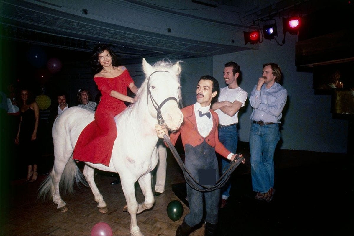 Uma mistura de celebridades de todas as áreas. Imagine entrar em uma festa e ver Bianca Jagger montada em um cavalo branco.
